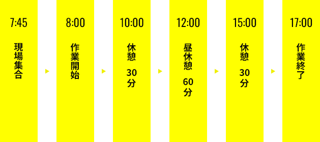 勤務時間 | 8:00~17:00 (現場により異なる) |
